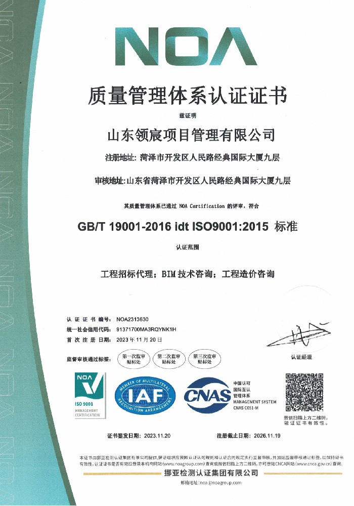 山東領(lǐng)宸項目管理有限公司是一家以全過程工程咨詢?yōu)楹诵牡淖稍兎?wù)公司,本公司現(xiàn)具備工程造價咨詢乙級資質(zhì),房屋建筑工程、市政工程監(jiān)理乙級資質(zhì)和招標(biāo)代理備案。公司擁有專業(yè)的工作團隊及豐富的行業(yè)經(jīng)驗,在行業(yè)領(lǐng)域內(nèi)具有雄厚的實力,企業(yè)管理人員擁有行業(yè)20年以上的資深行業(yè)工作經(jīng)驗。公司現(xiàn)有專業(yè)技術(shù)人員50余人,具有一級注冊造價工程師、注冊監(jiān)理工程師、一級注冊建造師、二級注冊建造師、招標(biāo)師等工程類國家注冊執(zhí)業(yè)資格證書人員合計30余人以及高級工程師3人,持證上崗率達(dá)到90%......